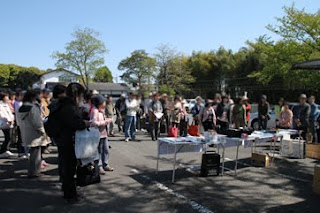 画材をお持ちでない方でも気軽にご参加いただけるよう今回も「手ぶらで参加」でDUO油絵具・画材セット一式を18名の方々に無料貸し出し(要事前予約、キャンバスのみ事前振込み)いたしました。また、画材持参の方もイーゼルだけ現地で借りられるということもあり、意外と皆さん身軽ないでたちでの参加です。しかし、春の日差しは紫外線が強いものです。帽子や日傘などの準備をお忘れなく。